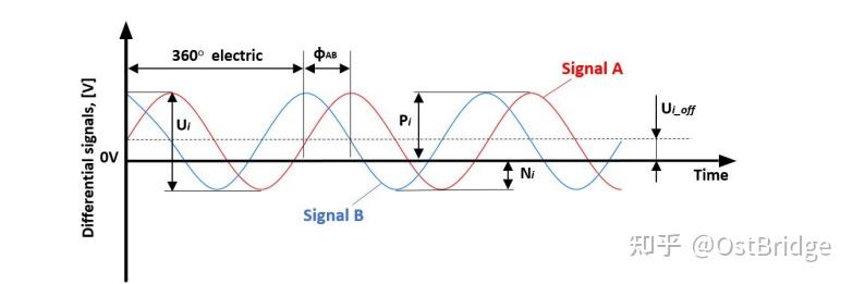 Verschiedene optische Abtastprinzipien für Fotodioden (wie Talbot-Effekt, Lau-Effekt, Moiré-Effekt, verallgemeinerte Gitterabbildung und Interferometrie) werden genutzt, um elektronische Ausgangssignale zur präzisen Positionsbestimmung zu erzeugen. Abhängig von den verwendeten elektronischen Bauelementen können optische Encoder unterschiedliche Schnittstellen aufweisen, um einen zuverlässigen Informationsaustausch zu gewährleisten. Eine der am häufigsten verwendeten Schnittstellen für die inkrementelle Positionsmessung besteht aus zwei analogen, nahezu sinusförmigen Spannungssignalen (Abbildung 1). Die Signale A und B sind um 90 Grad phasenverschoben und weisen typischerweise eine Amplitude von 1 Vpp auf.
