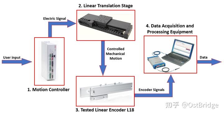 Der dreiphasige Drahtbürsten-Servomotor im Translationstisch wird von einem ACS-Servo-Bewegungsregler mit integriertem Treiber gesteuert. In der Translationsphase dient ein integrierter, berührungsloser linearer optischer Encoder als Rückkopplungssystem für hochauflösende Positionierung und gleichmäßige Bewegungssteuerung. Elektrische Signale werden mit einem digitalen Oszilloskop abgetastet und aufgezeichnet. Das Schaltbild des Versuchsaufbaus ist in Abbildung 4 dargestellt.