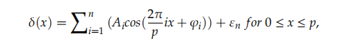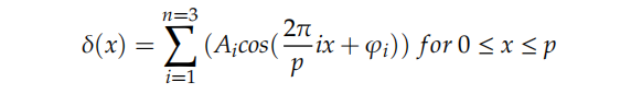 unter δ (x) Repräsentiert die SDE des Encodergitters innerhalb eines Zyklus, Ai und ji repräsentieren die Amplitude und Phase der Harmonischen, und x repräsentiert die relative Position innerhalb eines Zyklus p.