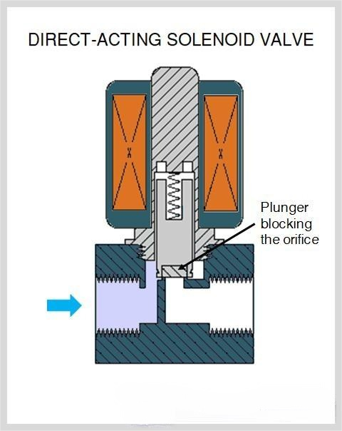 Bei diesem Magnetventiltyp steigt der statische Druck mit zunehmender Öffnungsgröße. Der erhöhte statische Druck erfordert eine stärkere Magnetwirkung und somit ein stärkeres Magnetfeld. Das bedeutet, dass bei gleichem Flüssigkeitsdruck größere Durchflussmengen größere Magnetspulen benötigen. Flüssigkeitsdruck und Durchflussmenge sind dann direkt proportional zur erforderlichen Größe der Magnetspule. Dieser Magnetventiltyp wird üblicherweise für Anwendungen mit geringen Durchflussmengen und Betriebsdrücken eingesetzt.