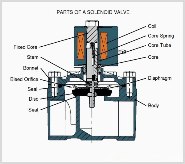 Ein Magnetventil besteht aus zwei Hauptteilen: dem Magneten, der für das Öffnen und Schließen des Ventils zuständig ist, und dem Ventilkörper, der das Fluid und dessen Druck enthält.