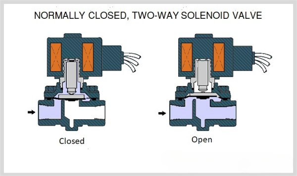 Dieses Magnetventil verfügt über einen stromaufwärts und einen stromabwärts gelegenen Anschluss und dient zum Sperren oder Freigeben des Flüssigkeitsstroms. Es kann als normalerweise offen oder normalerweise geschlossen konfiguriert werden; der Normalzustand ist der stromlose Zustand. Ein normalerweise offenes Ventil öffnet sich im stromlosen Zustand und schließt sich im bestromten Zustand. Bei normalerweise geschlossenen Ventilen verhält es sich umgekehrt.