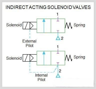 Sowohl intern als auch extern vorgesteuerte Magnetventile werden als indirekte oder servounterstützte Ventile bezeichnet, bei denen die Hauptbetätigungskraft aus dem Differenzdruck zwischen dem stromaufwärts und dem stromabwärts des Ventils resultiert.