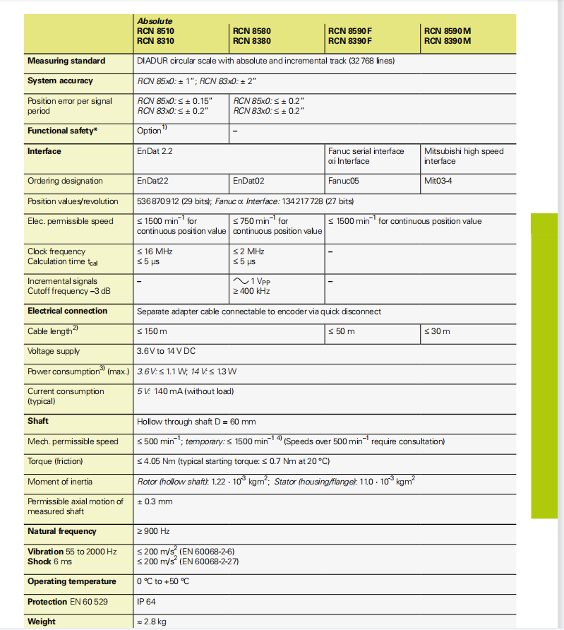 Die Winkelgeber der Serie HEIDENHAIN RCN 8000 zeichnen sich durch hohe zulässige Wellendrehzahlen von bis zu 1500 U/min, eine hohe Linienanzahl von 32,768 Linien und eine exzellente Signalqualität mit sehr hoher Genauigkeit aus. Selbst Flüssigkeitsverschmutzung und Kondensation haben bei den Gebern der RCN-Serie nur geringe Auswirkungen auf die Abtastsignale. Die Geber gewährleisten eine zuverlässige Abtastung im Einsatz und vermeiden Störungen im Bearbeitungsprozess durch Geberverschmutzung. Weitere Details finden Sie im beigefügten PDF-Datenblatt.