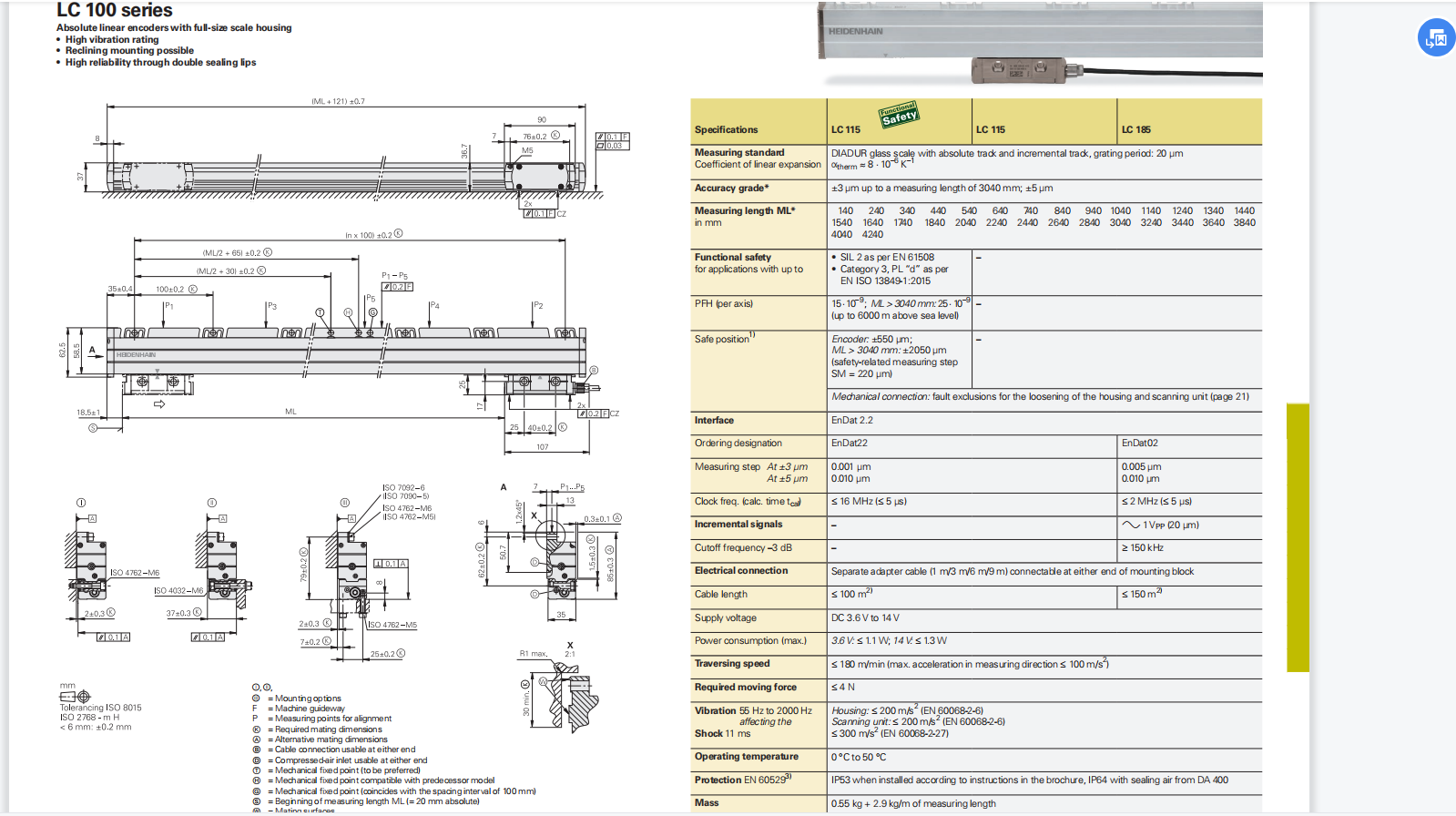 Die Heidenhain LC 100-Serie zeichnet sich durch ein kompaktes, hochpräzises und robustes Design mit geringem Platzbedarf aus. Die LC 100-Encoder verfügen über einen großen Abtastbereich. Hauptanwendungsgebiet sind CNC-Maschinen (numerisch gesteuerte Werkzeugmaschinen).