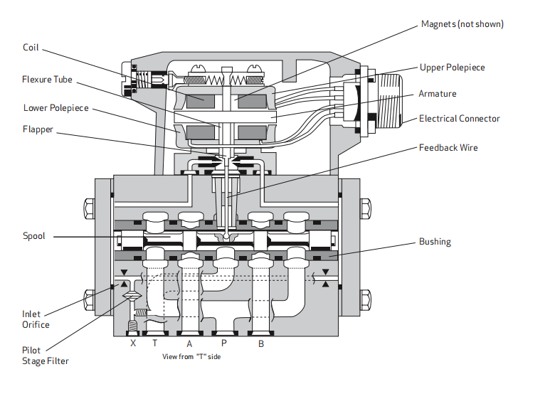 Schnittdarstellung eines elektrohydraulischen Servoventils: