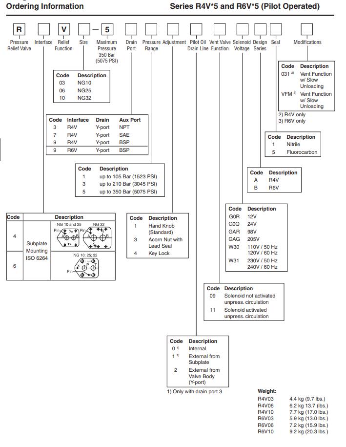 Die Druckbegrenzungsventile der Serien PARKER R4V*5 und R6V*5 verfügen über eine manuelle Voreinstellstufe, die eine sitzende Hauptstufe steuert.