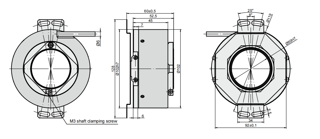 Der A102H ist als Hohlwellen-Encoder konzipiert und speziell für die direkte Montage auf einer Motorwelle oder anderen rotierenden Maschinenteilen entwickelt worden. Diese Eigenschaft bietet eine kompakte und effiziente Lösung für die präzise Positionserfassung in verschiedenen industriellen Anwendungen.