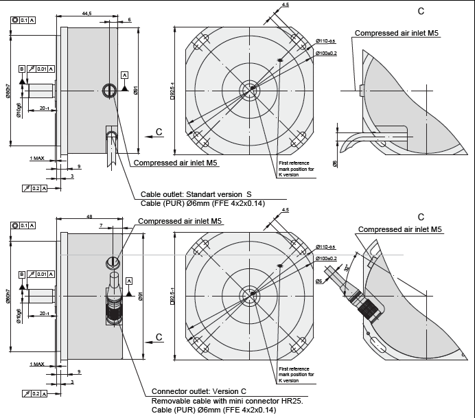 S – eins pro Umdrehung K – 36 pro Umdrehung, distanzkodiert |